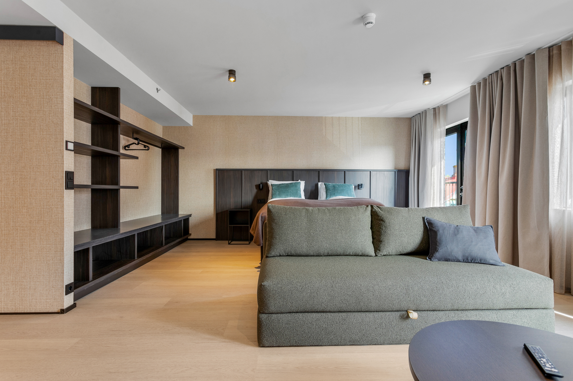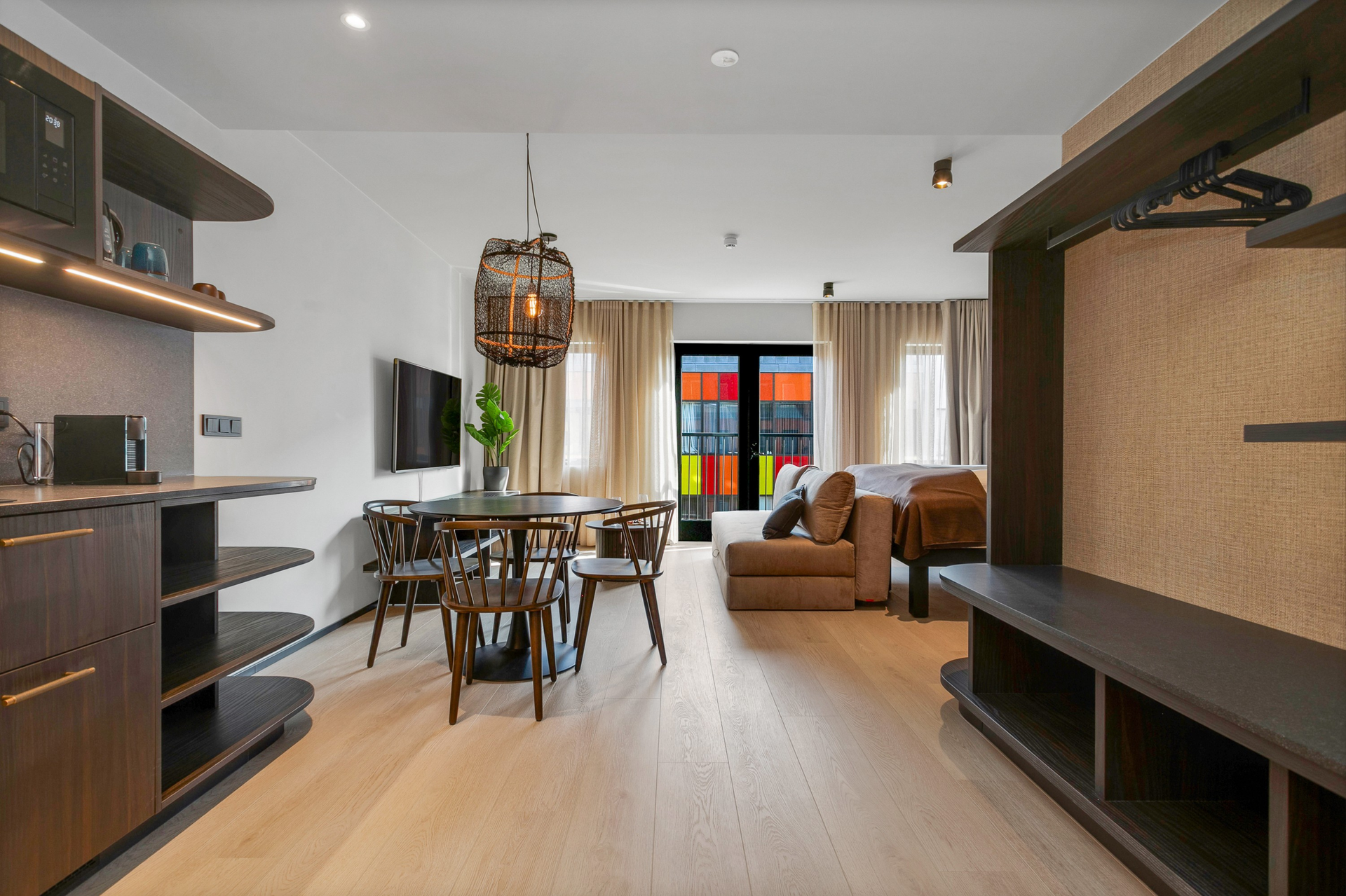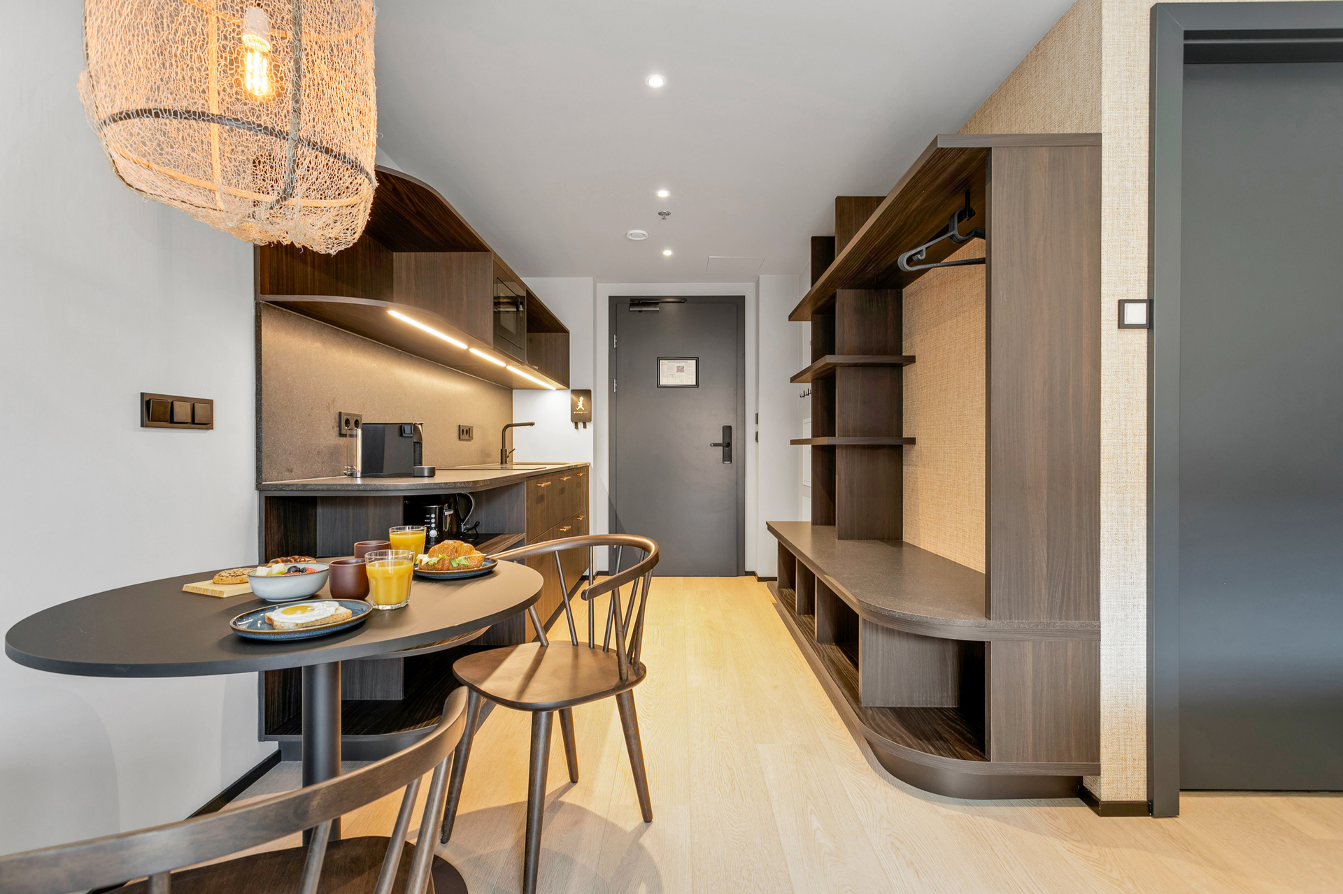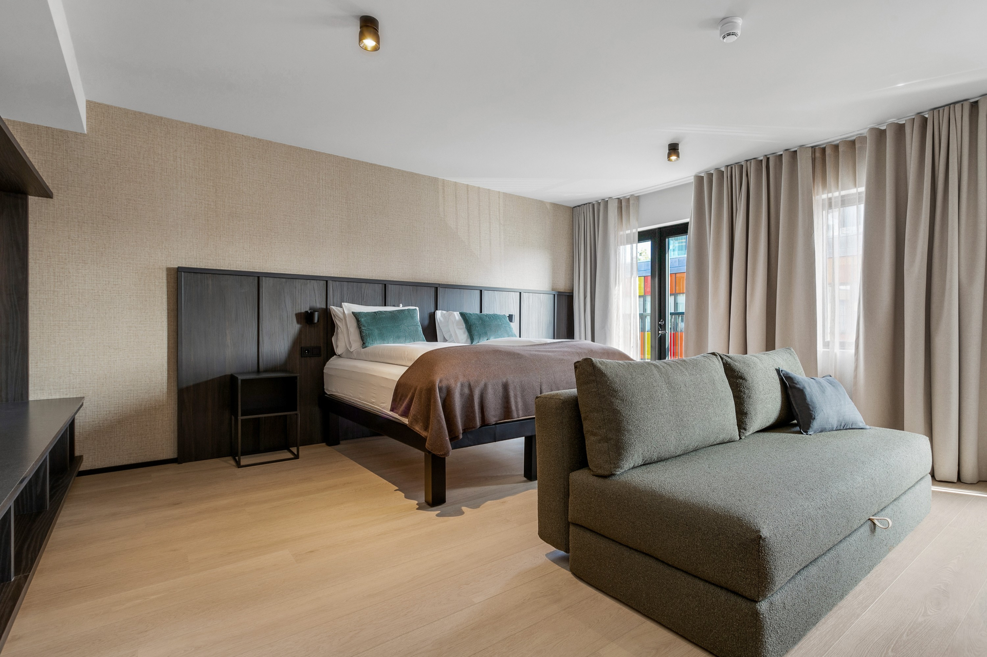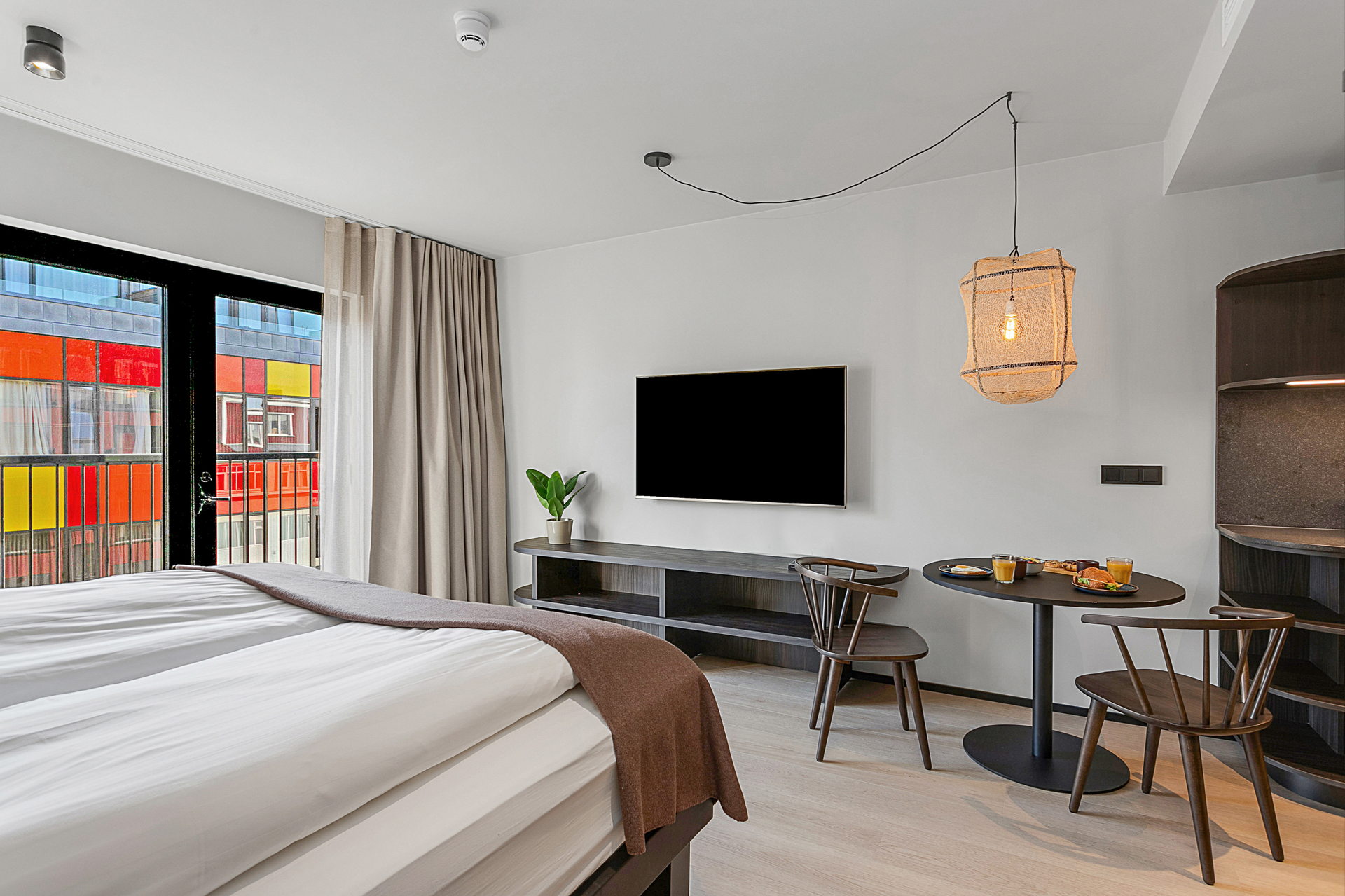 Litlu stúdíóíbúðirnar eru bjartar og vel skipulagðar frá 26,6 fermetrum með útsýni yfir þakgarðinn.