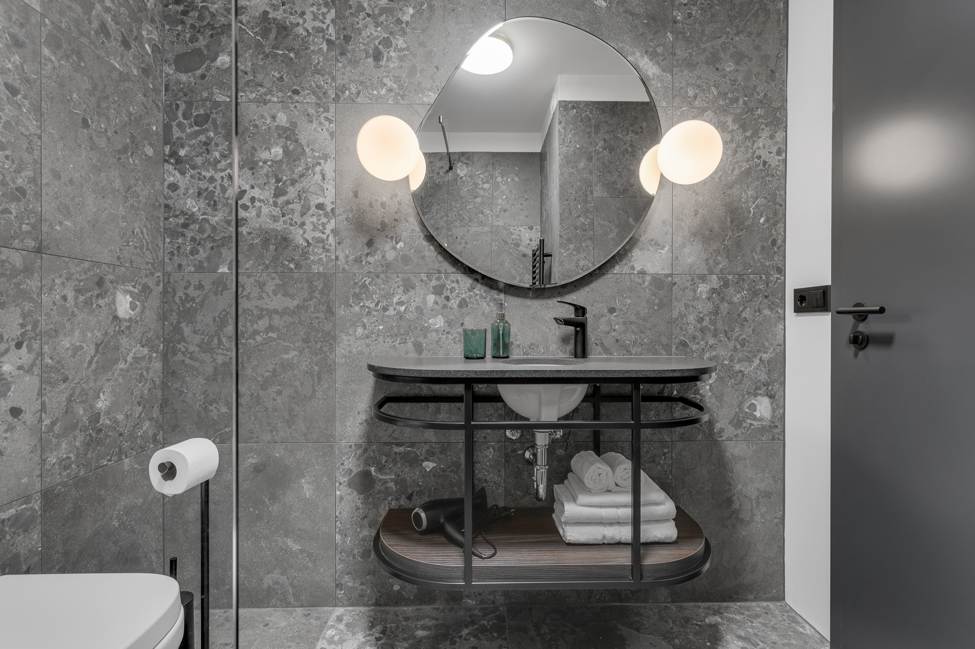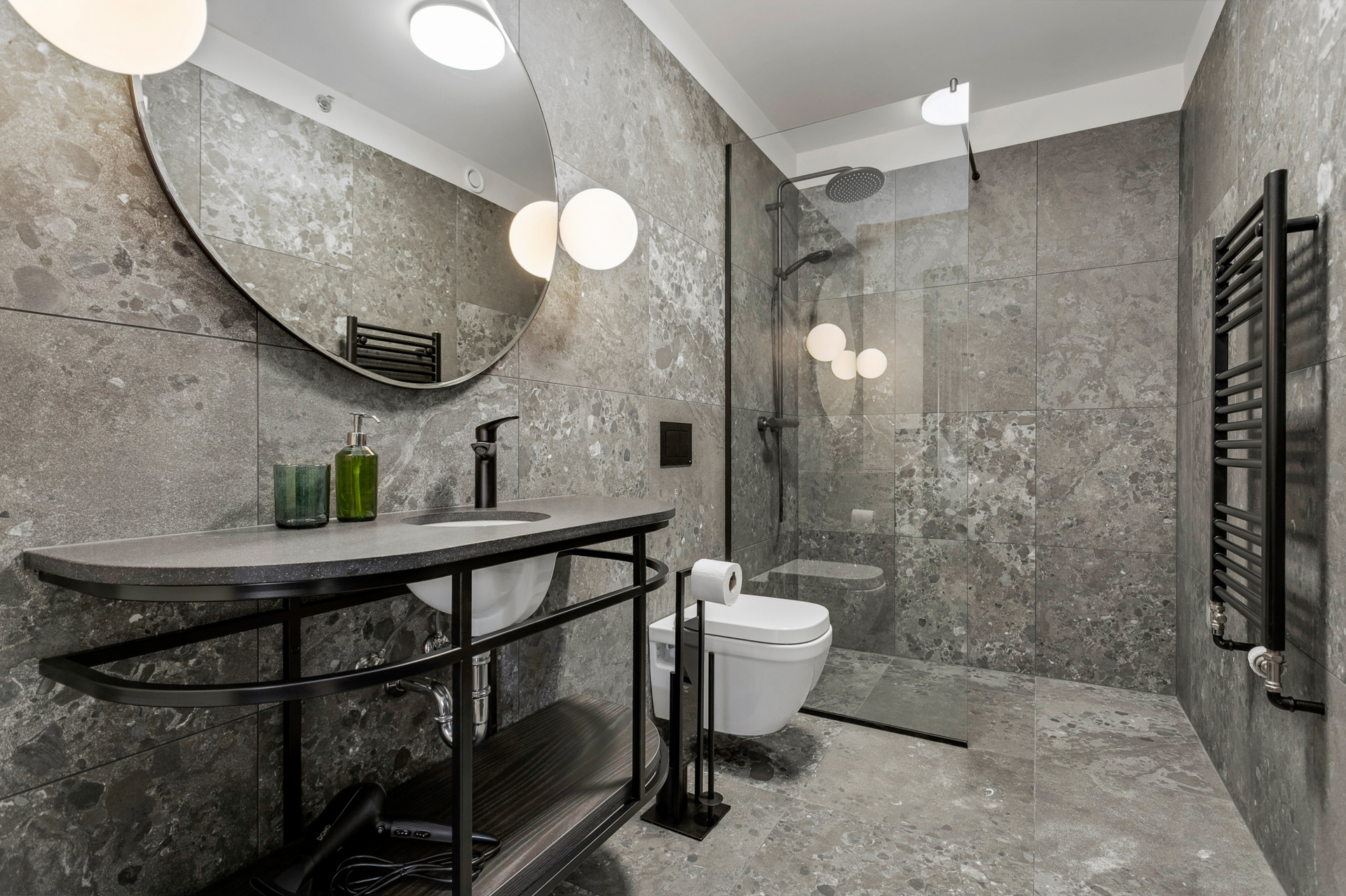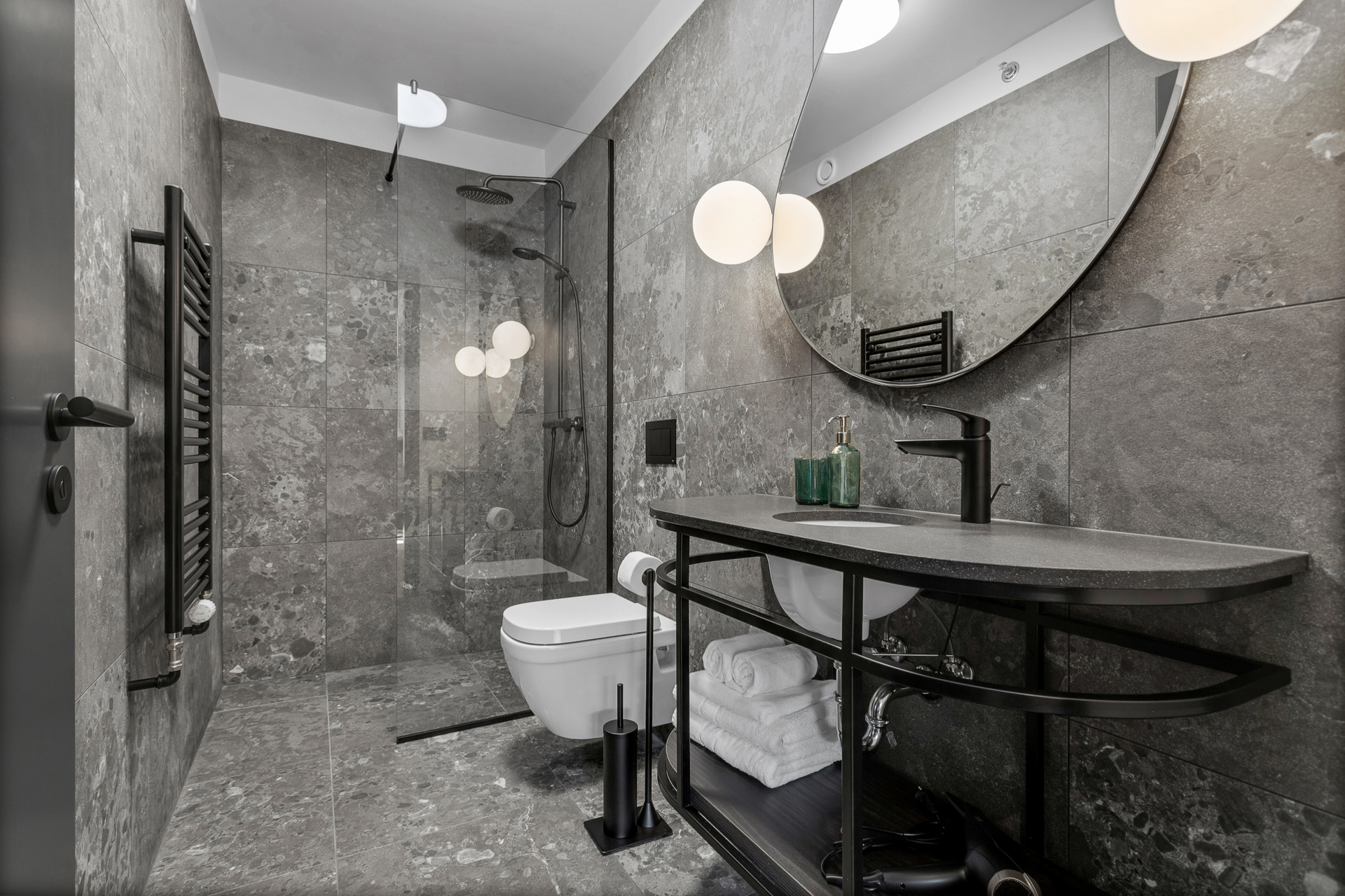 Sjampó, hárnæring og baðsápa eru á öllum baðherbergjum. Ásamt hárblásara.